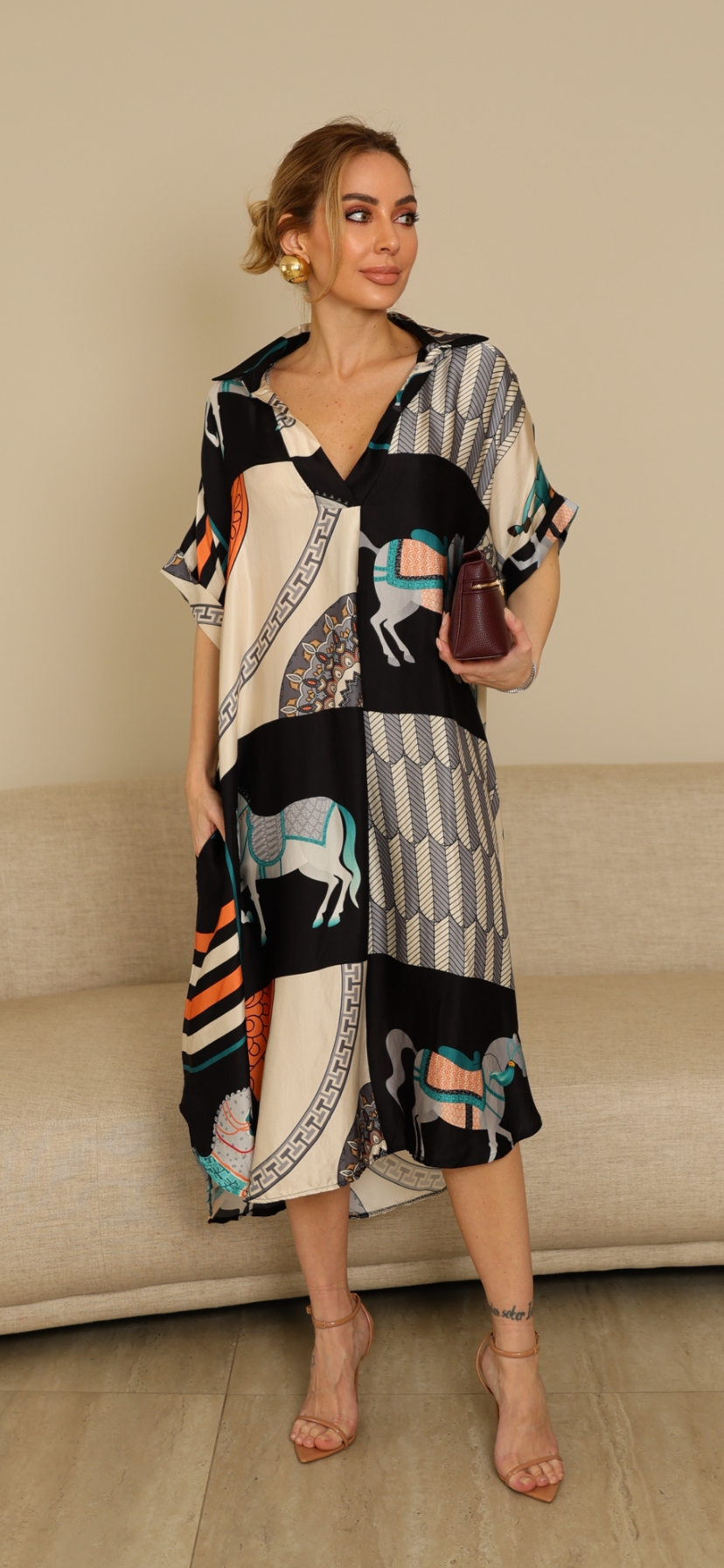 Vestido Emma, com 2 bolsos. estampa exclusiva.