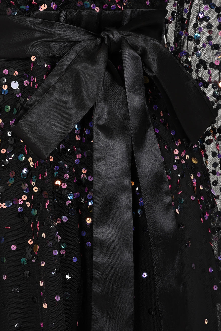 Vestido bordado com pérolas, lantejoulas