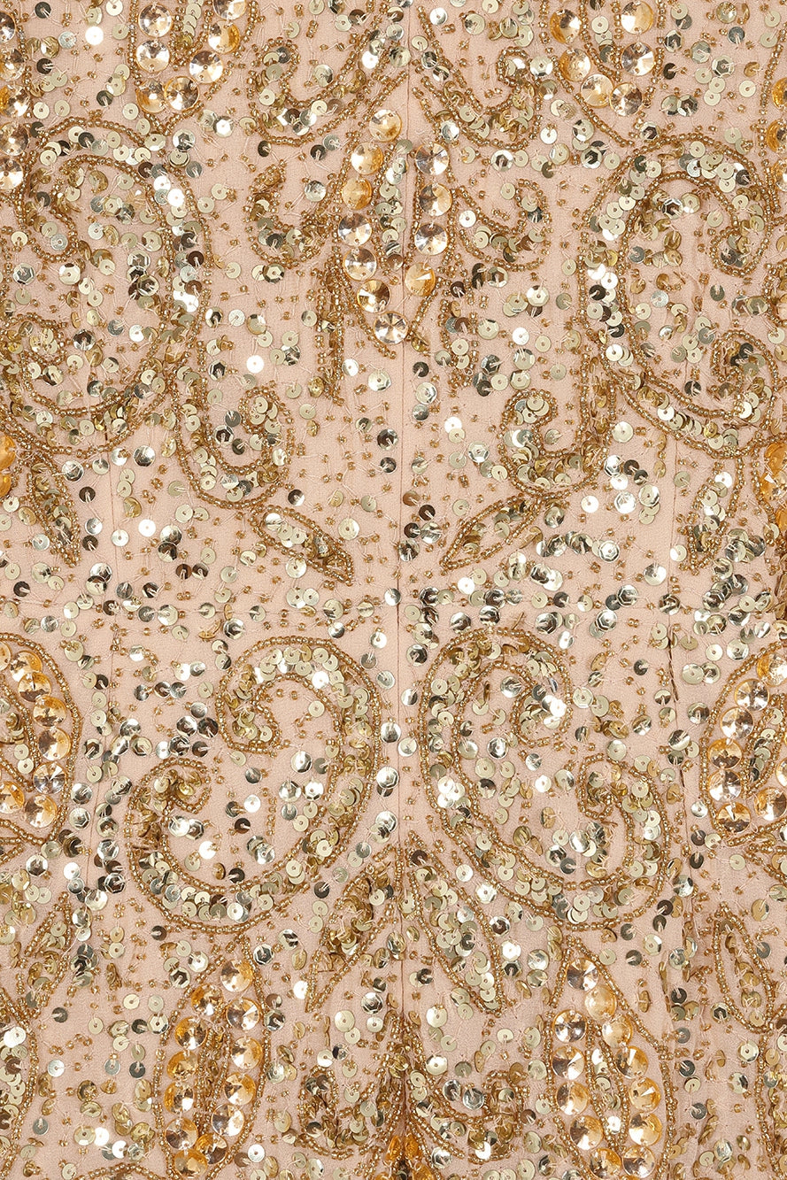 Vestido longo em tule bordado com capa. Ziper nas costas.