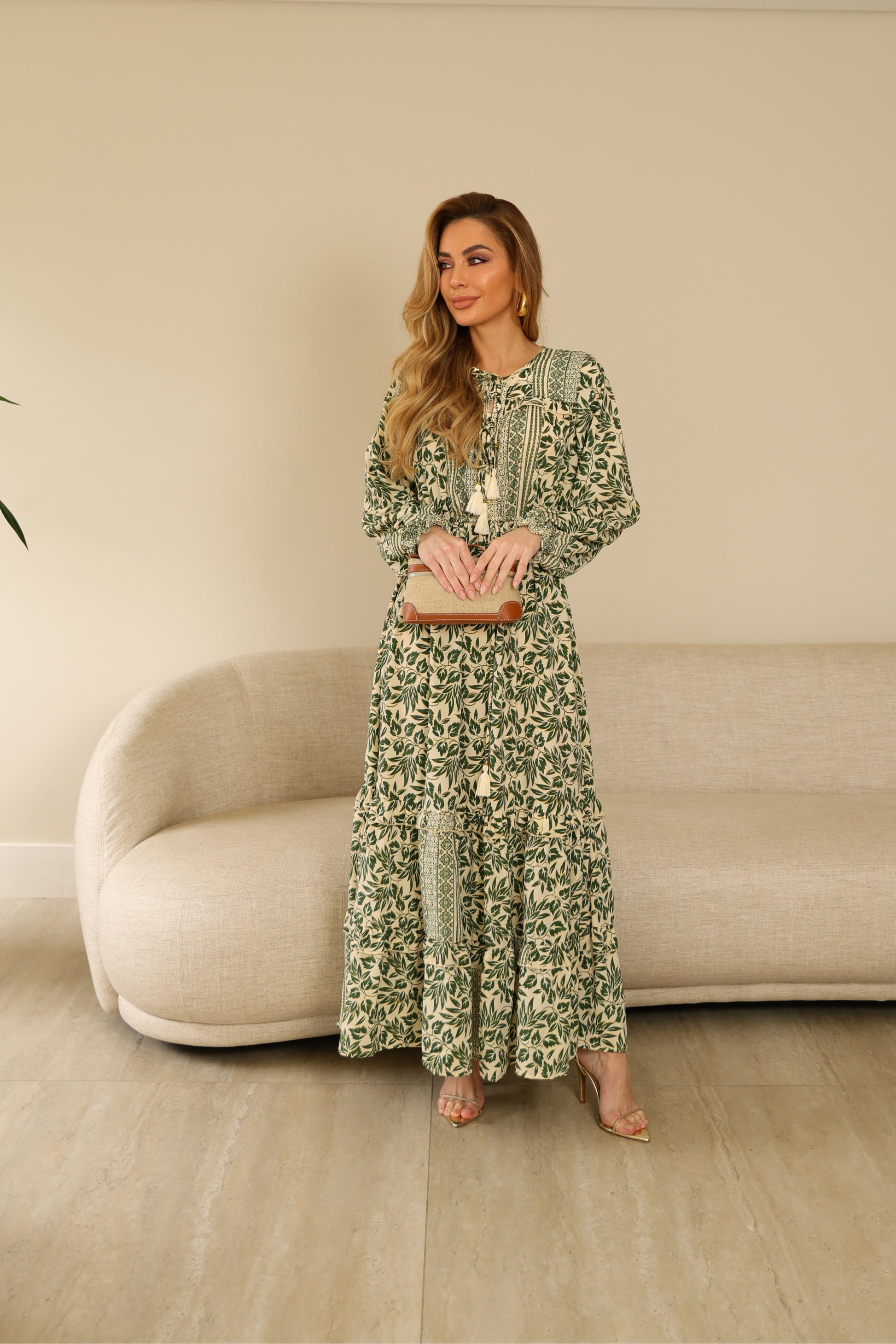 Vestido Nice com ajuste na cintura. Com 2 cordões pom pom