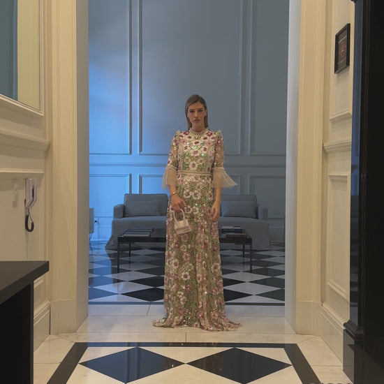 Vestido Sarah. Bordado feito à mão em tule (forrado)