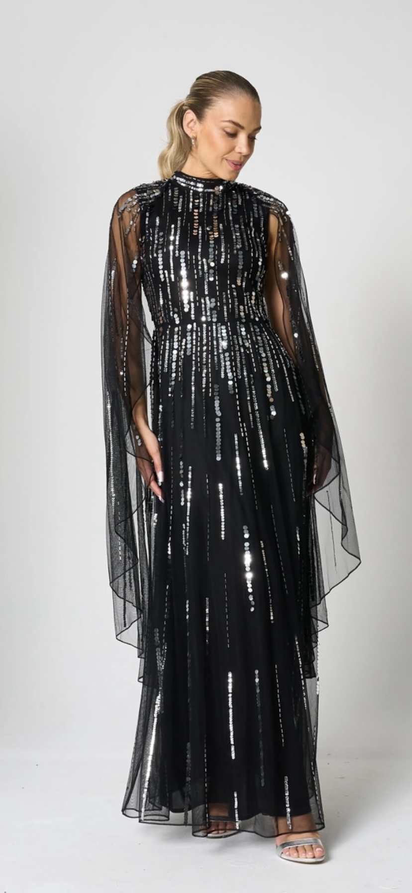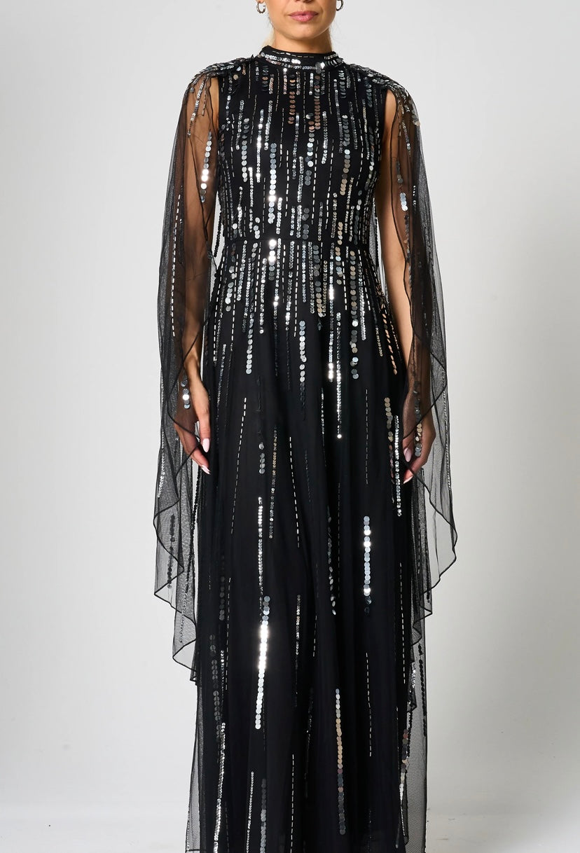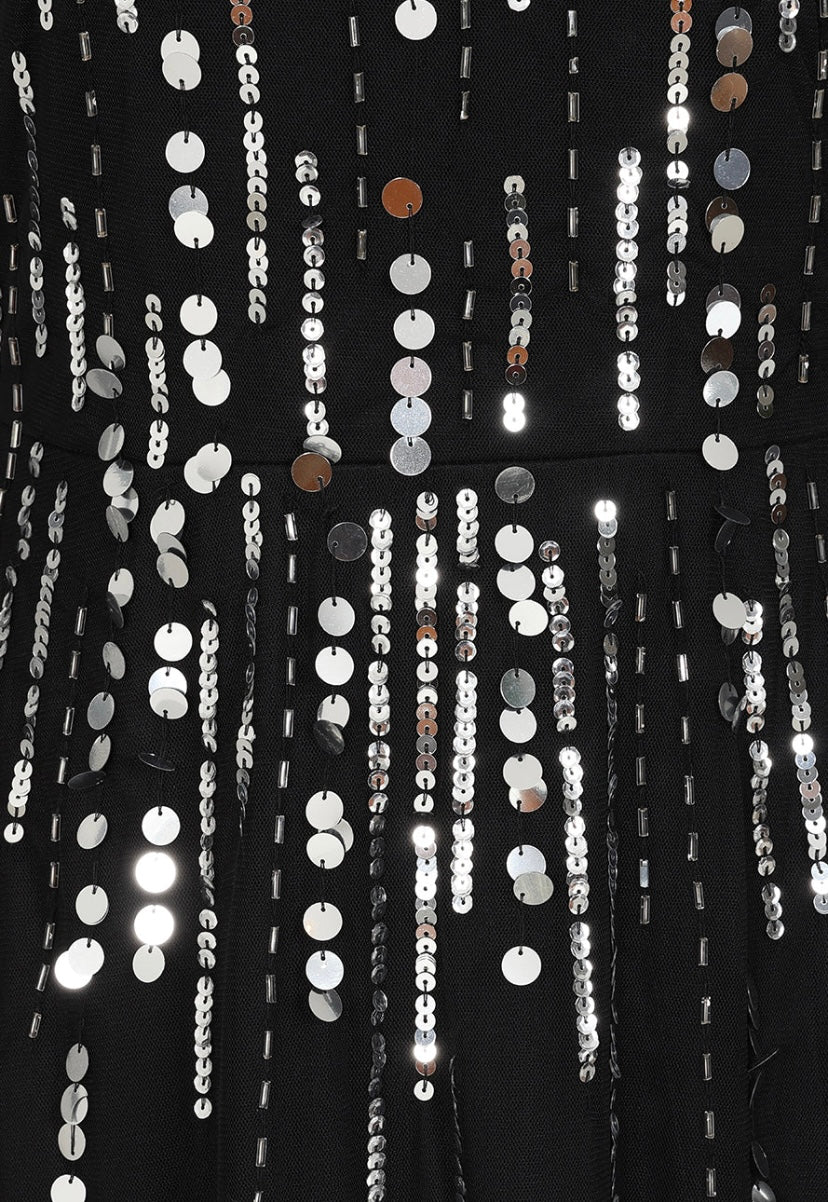 Vestido bordado com pérolas, lantejoulas